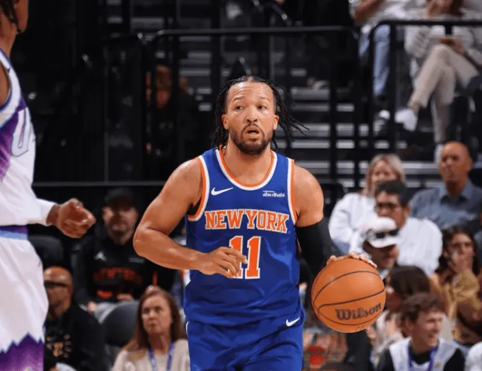 本场比赛,尼克斯队球员杰伦-布伦森出战33分钟,投篮16中7,三分球7中4,罚球11中10,得到28分4篮板8助攻3抢断。